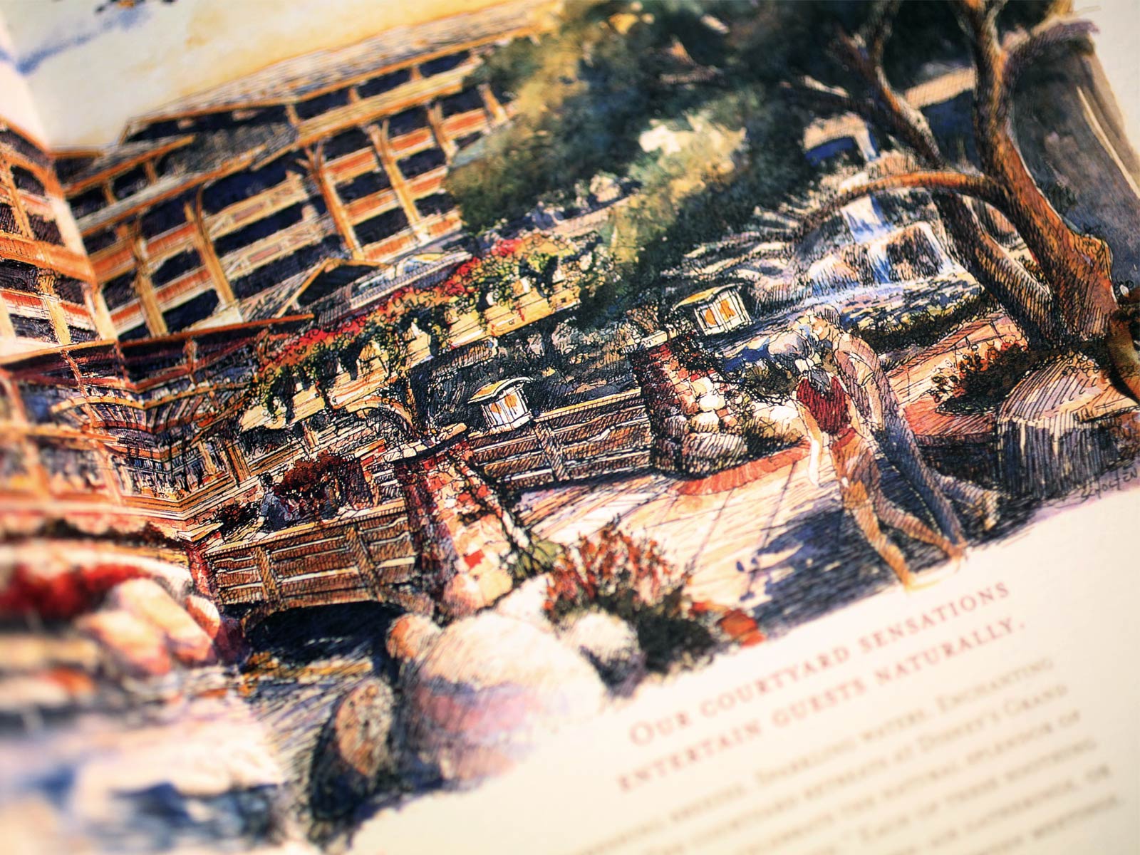 DRA has had a close relationship with Disneyland for more than 30 years and has been commissioned for design, marketing and communication materials for Disneyland parks and resorts. Collaborating with and working alongside Disney's creative team, DRA has created a wide variety of award-winning work for the world-renowned brand, including the in-room collateral and branding of toiletries and amenities for the Disneyland Hotel and the Disneyland Grand Californian Hotel.