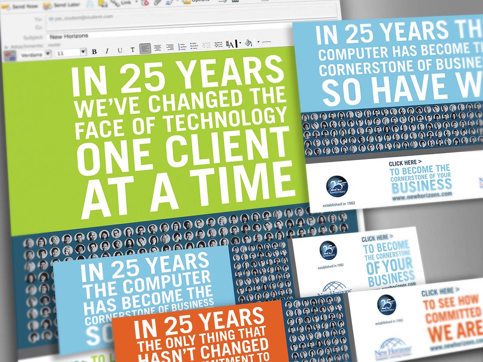 New Horizons, with over 300 centers in 60 countries, is the world’s largest independent IT training company. They wanted to celebrate 25 years of computer education with a marketing kit for all of their centers around the world. DRA designed the package which included balloons, party favors, a brochure and a DVD. The DVD contained artwork for print advertisements, web banners and copy for radio spots. New Horizons also called on DRA to design and develop their global website. DRA chose to develop a site that was a clean and contemporary, allowing the richness of the site's content to pull through.