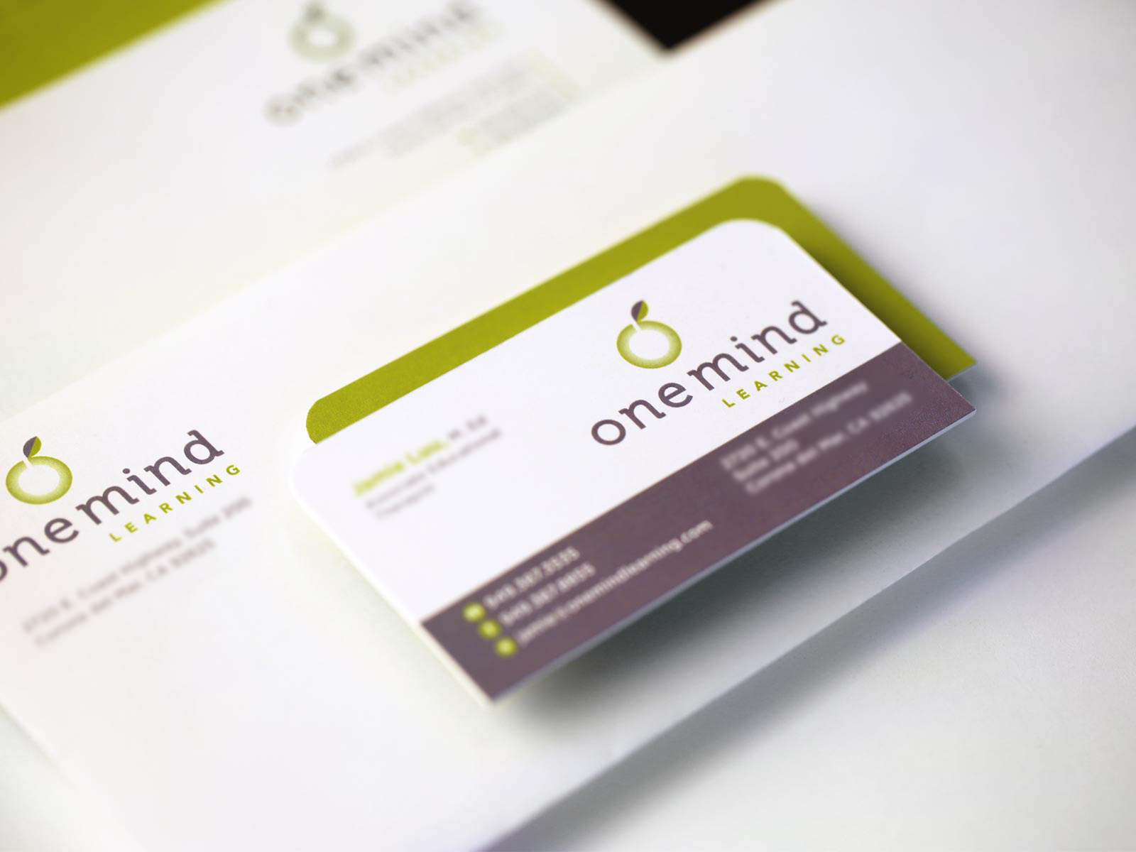 David Riley Associates developed the brand identity for this California educational company that specializes in one-to-one tutoring. The distinctive logo combines the “O” of One Mind with the leaves of an apple, a symbol of education.