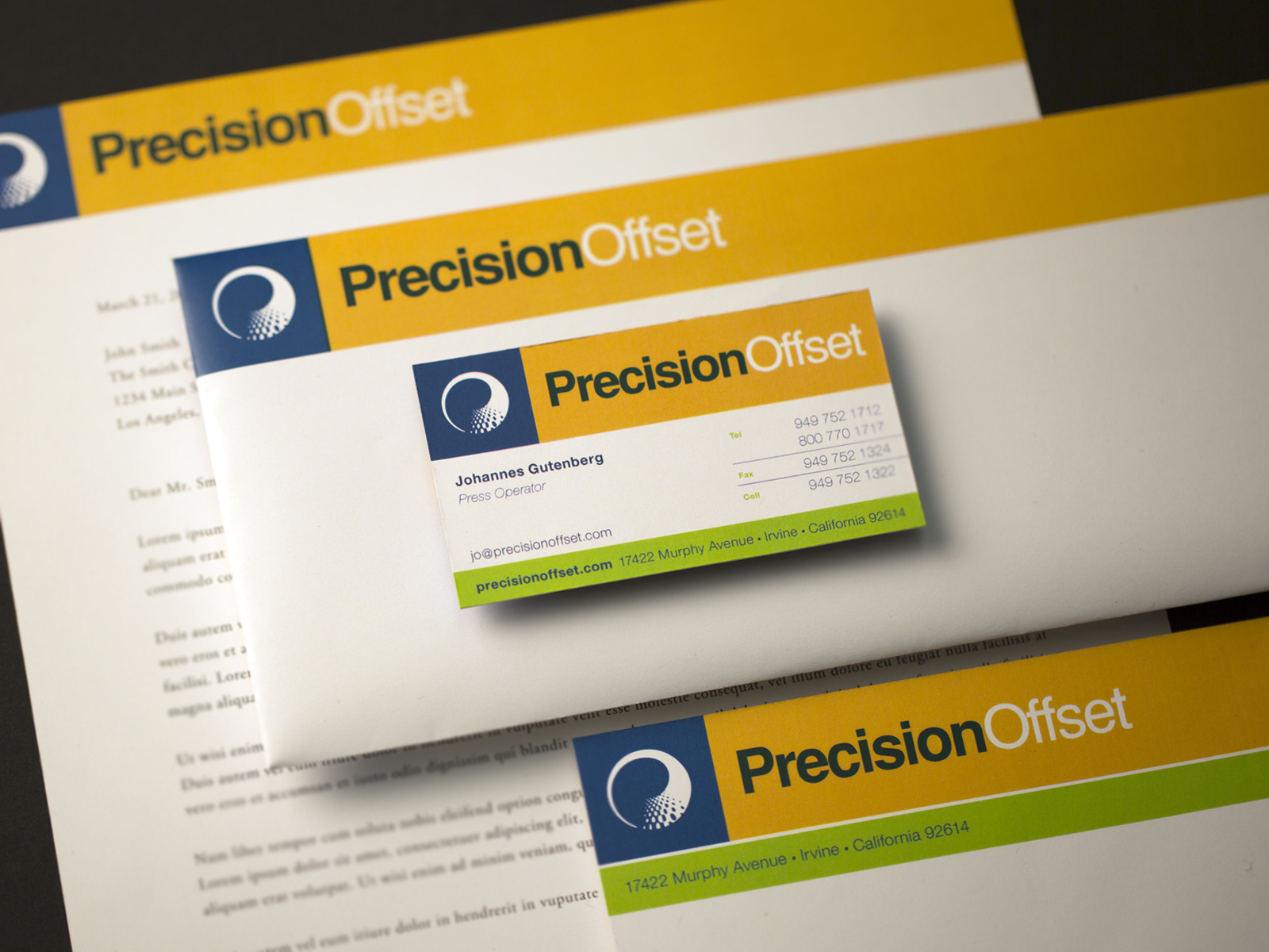 Precision Offset engaged DRA when they needed a cohesive branding program to coincide with their sustained growth. Precision Offset is a communications support company that helps large businesses quickly and cost-effectively produce their print materials. Blocks of color and a beautiful new identity allow even their stationary to act as marketing materials for their quality prints.