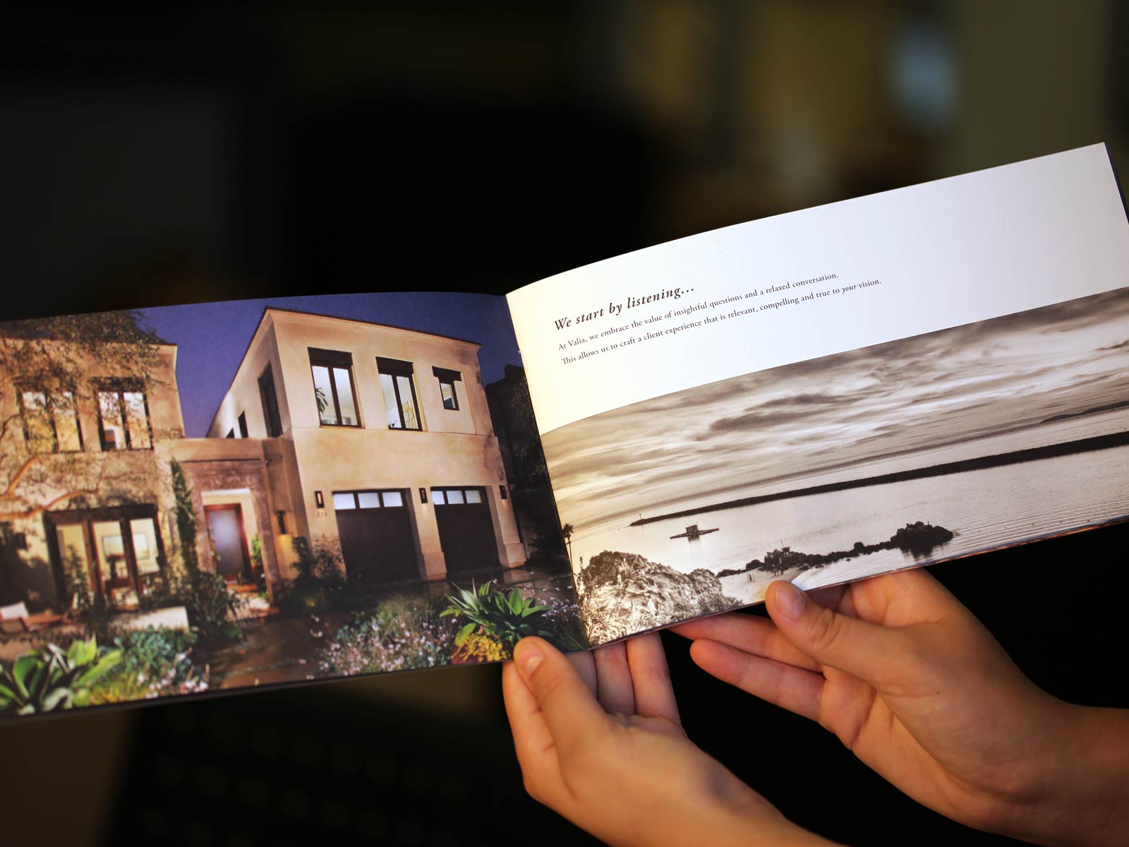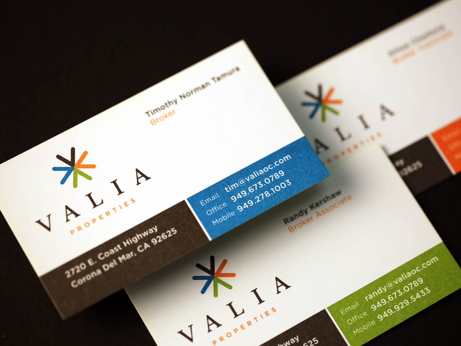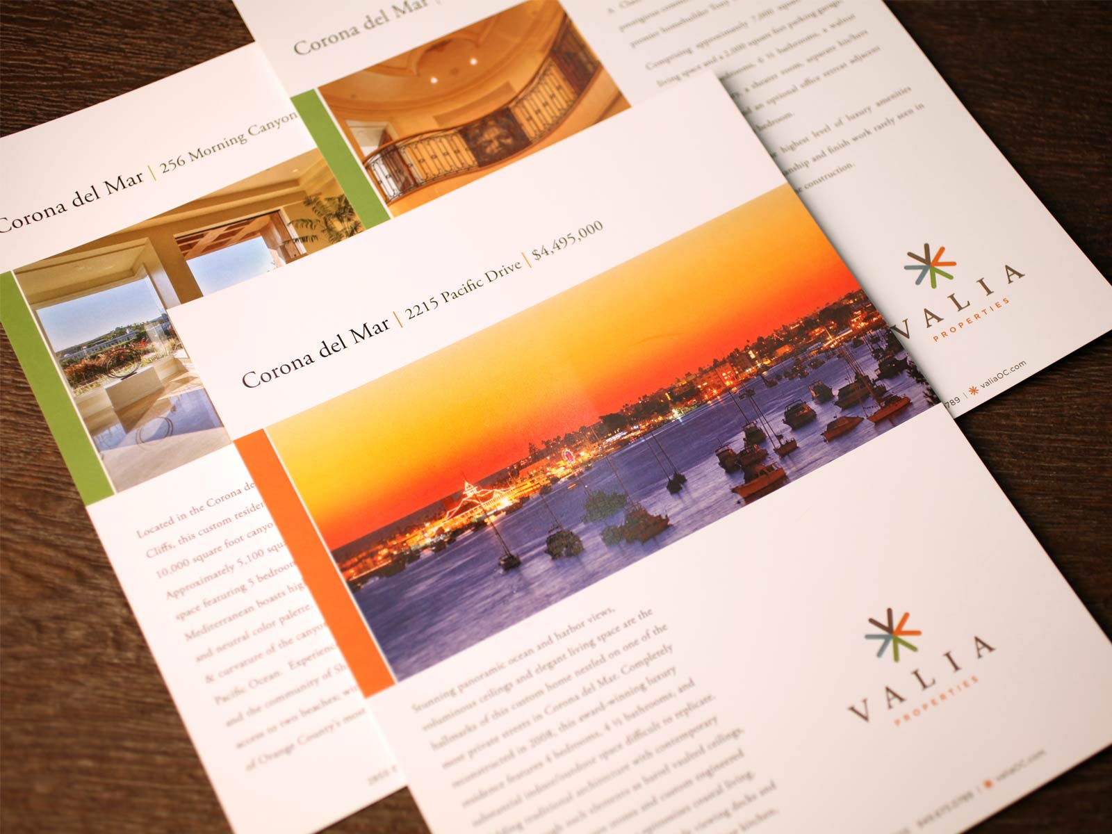 DRA had the pleasure of developing the nomenclature, identity and marketing materials for Valia Properties, a Southern California real estate firm which ranks among the top 100 in the Wall Street Journal for real estate sales teams in the United States. The seasoned brokers and agents at Valia Properties are devoted to crafting excellent client experiences as they find homes that radiate comfort, luxury and tranquility. Their name and branding exemplifies this vision from the elegant typeface to the sophisticated color palette.